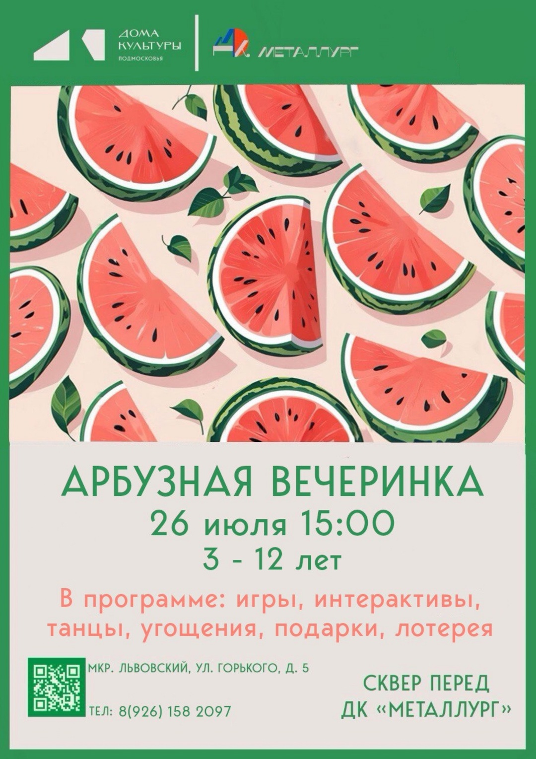 🍉 Место проведения: мкр. Львовский, ул. Горького, д. 5, Дом культуры «Металлург»