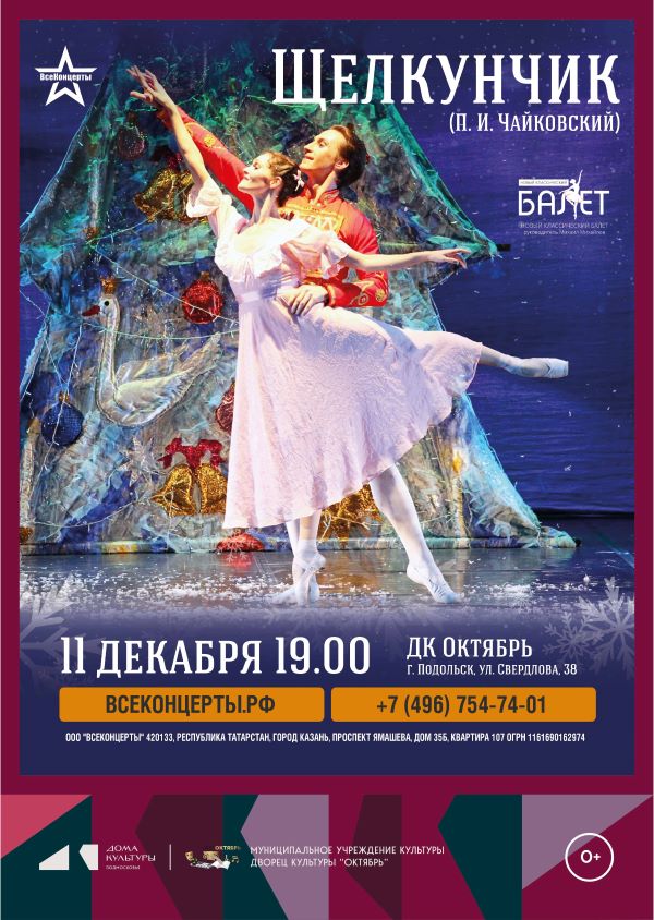 Балет «Щелкунчик» представит компания «Новый классический балет», руководитель — Михаил Михайлов. Труппа, основанная в 2011 году, сохраняет традиции русского классического балета, применяет новые интересные концепции в танце со всего мира, пробует новые решения и пути. Коллектив постоянно гастролирует и принимает участие в фестивалях, как за рубежом, так и в России. Ведущие солисты — артисты московских