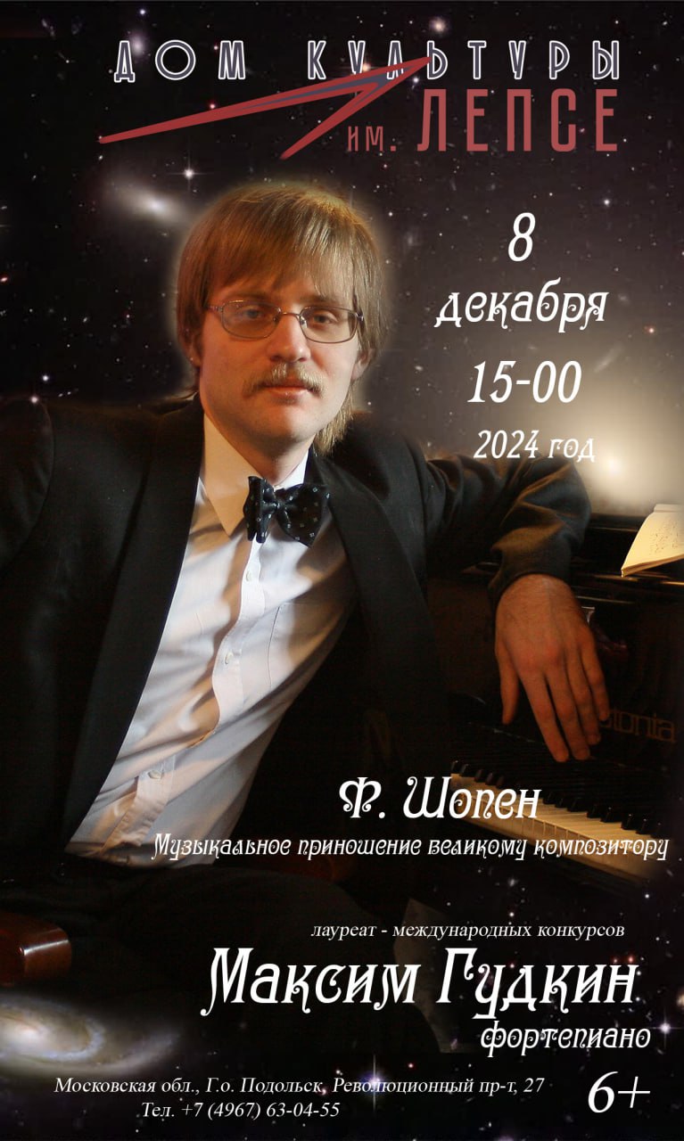 Исполнитель – лауреат международных конкурсов, приверженец старой русской фортепианной школы, концертмейстер, педагог и талантливый концертирующий пианист Максим Гудкин. Его выступления отличаются сложностью репертуара, основу которого составляют произведения Людвига ван Бетховена, Александра Скрябина, Иоганна Себастьяна Баха, Фридерика Шопена и Сергея Рахманинова. Многочисленные поклонники восторгаются глубокой, проникновенной манерой игры и высоким уровнем исполнительского мастерства музыканта.