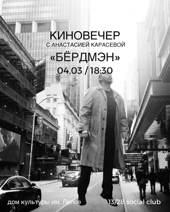 4 марта состоится кинопоказ фильма «Бёрдмэн» с Анастасией Карасевой!