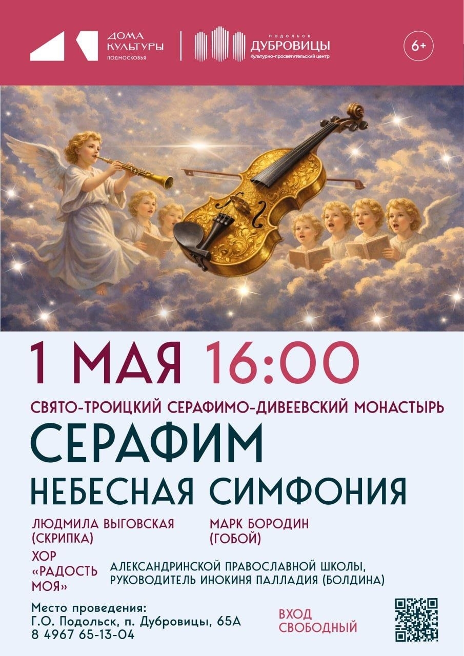 🌿 1 мая, пятницу, в 16:00 Культурно-просветительский центр «Дубровицы» приглашает вас на концерт классической музыки «Серафим — Небесная симфония».