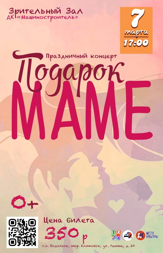 7 марта в 17:00 в «ДК «Машиностроитель» состоится концерт творческих коллективов под названием «Подарок маме». Это будет вечер, полный таланта и тепла. На сцене выступят дети, которые с радостью поделятся с вами своим искусством!