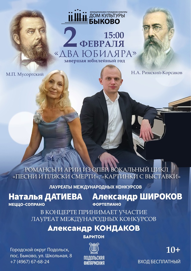Приглашаем вас на концерт, посвящённый двум юбилярам этого года, двум прекрасным русским композиторам — Н. А. Римскому-Корсакову и М.П. Мусоргскому.
