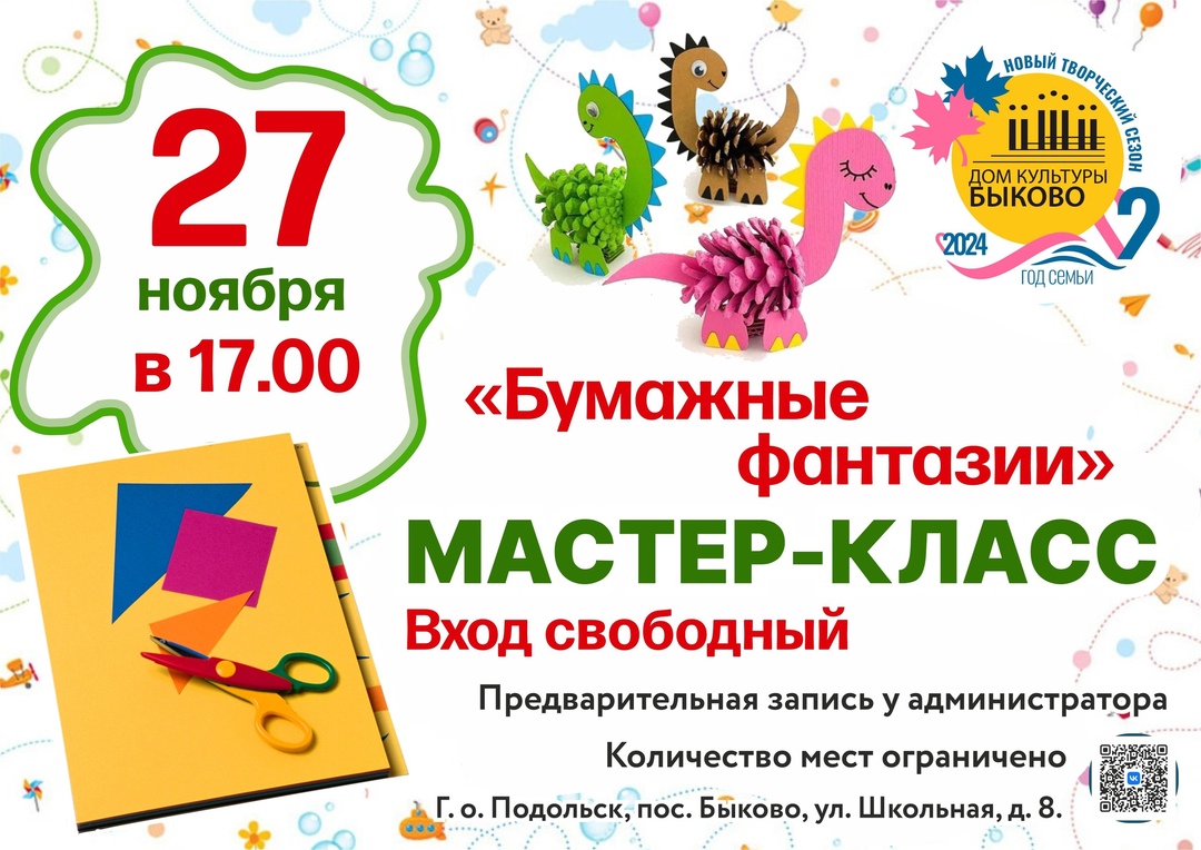 Мастер-класс «Бумажные фантазии» ✂✏ #Подольск #мыкультураМО #Домкультурыбыково #ДКБыково #DKbykovo #ДомкультурыБыково #ДомкультурыБыково The event is finished. Дата 27 Ноя 2024 Expired! Время 17:00 Места Дом культуры "Быково" Г.о. Подольск, ул. Школьная, д.8 Поделиться событием