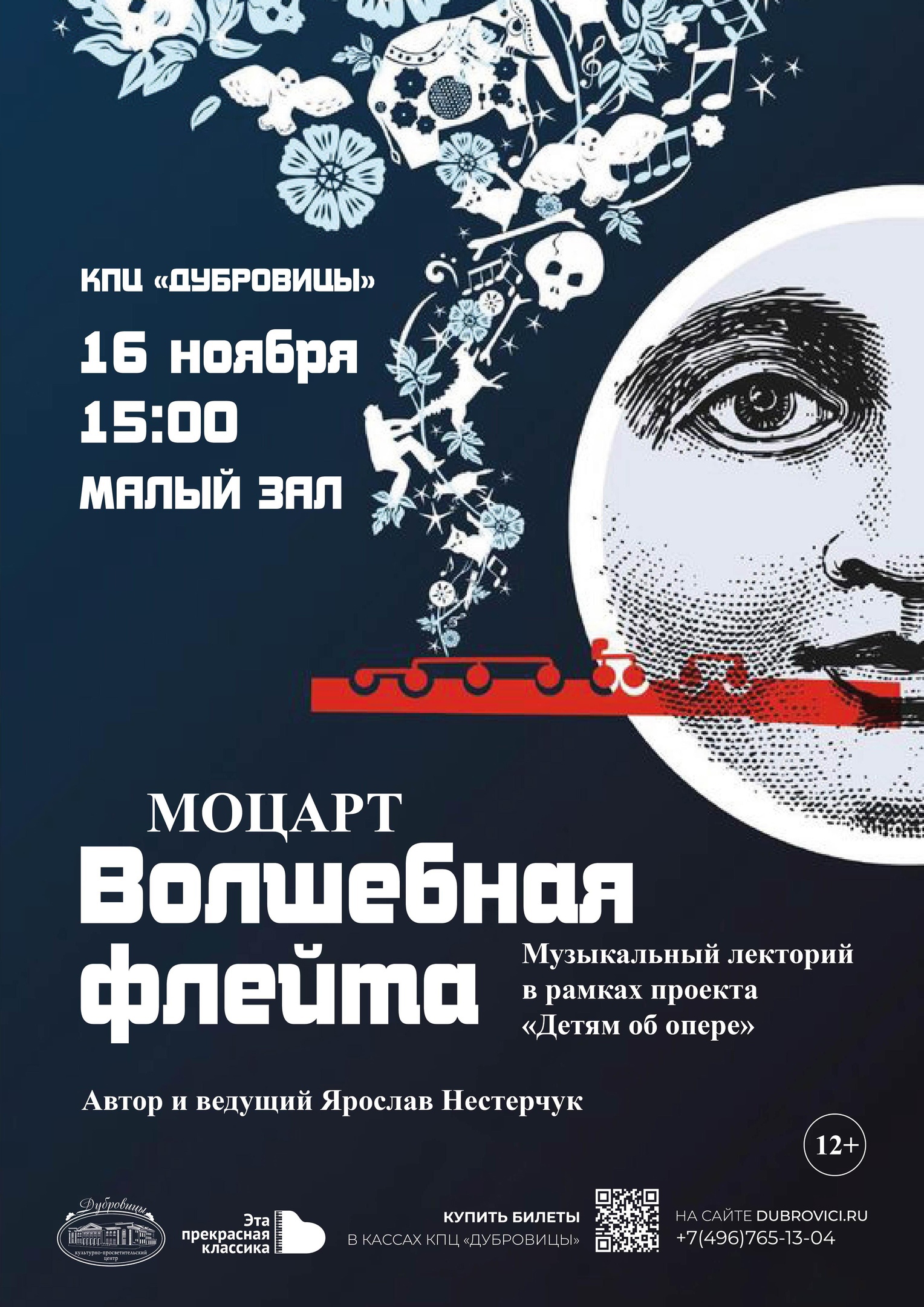 Будет представлена опера В. А. Моцарта «Волшебная флейта». На понятном детям языке расскажем, что такое опера и как готовиться к ее прослушиванию. Будем смотреть оперу и обсуждать в увлекательной беседе с ведущим Ярославом Нестерчуком.