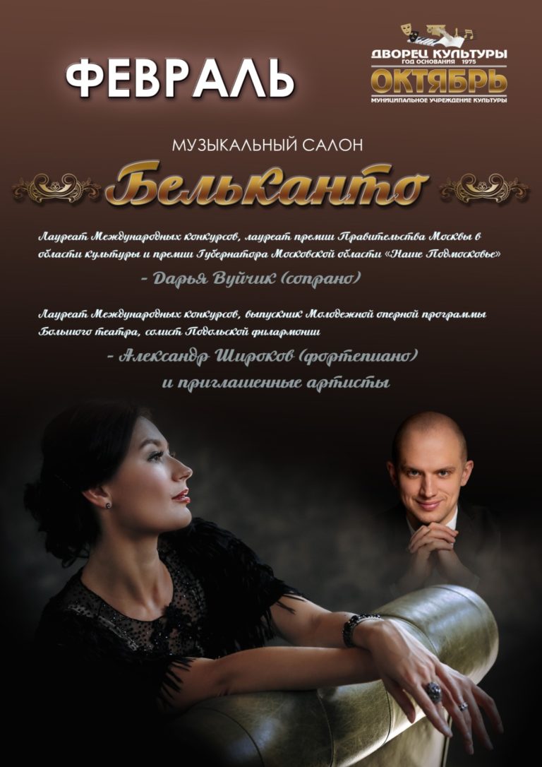 Дворец культуры «Октябрь» предлагает вам приобрести абонемент на весь сезон проекта «Музыкальный салон «Бельканто»