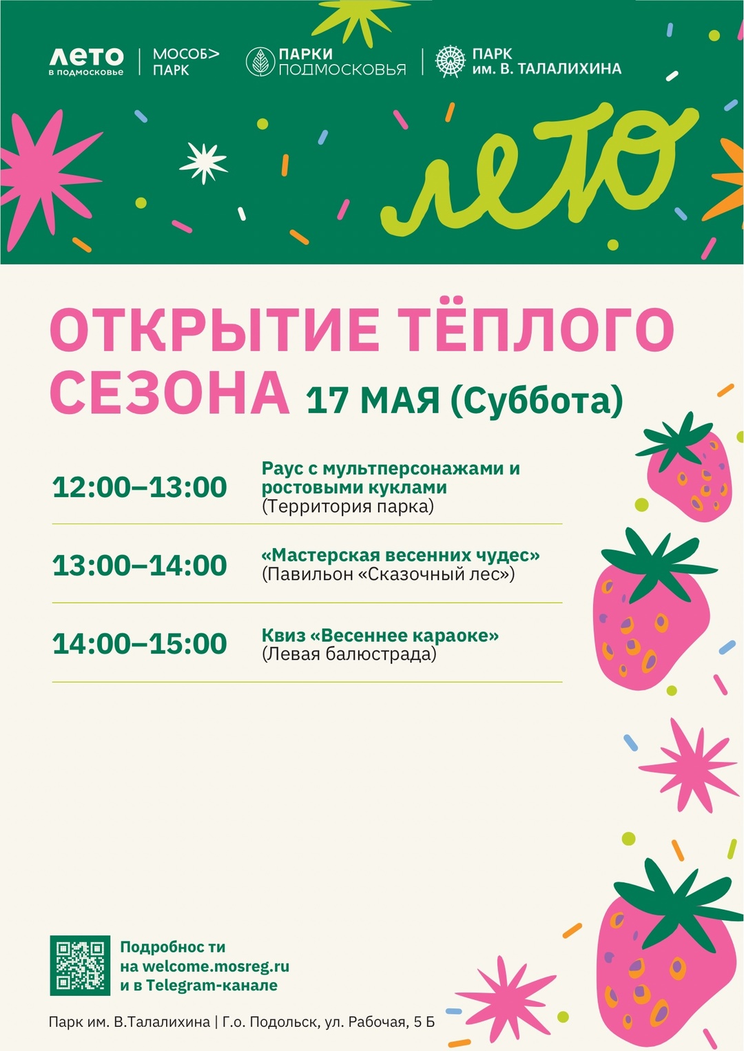 ☀️Открытие теплого сезона пройдёт 17 мая в Парке культуры и отдыха имени Виктора Талалихина.
