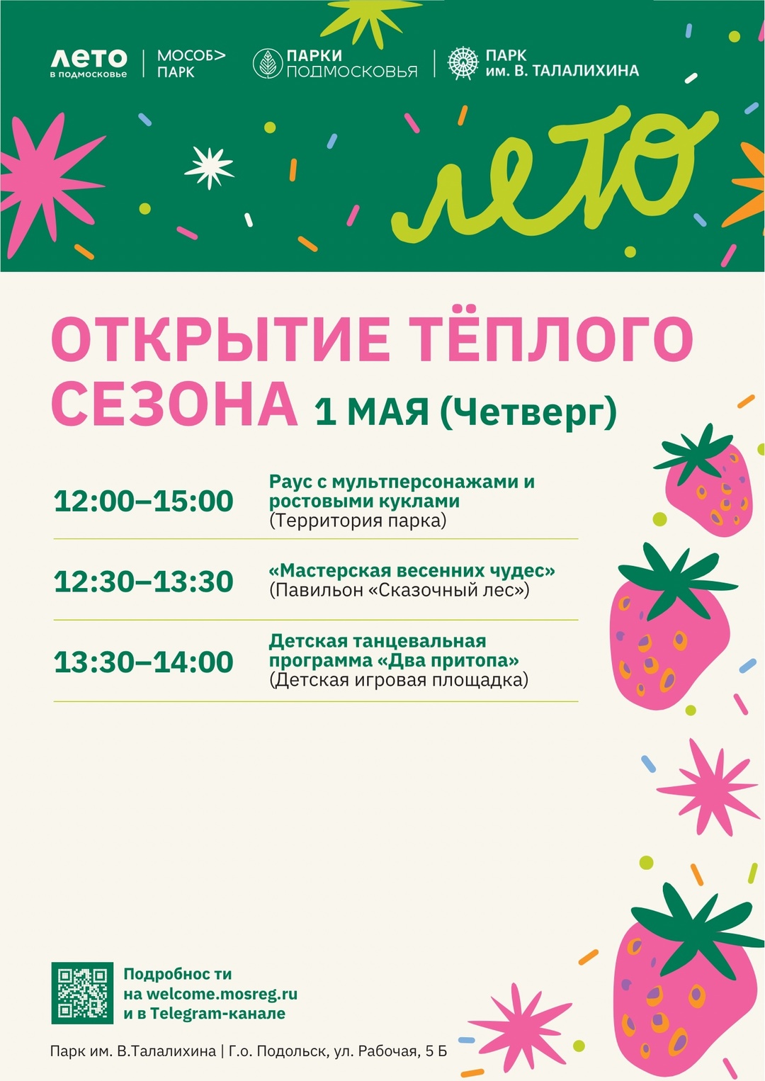 ☀️Открытие теплого сезона пройдёт 1 мая в Парке культуры и отдыха имени Виктора Талалихина.