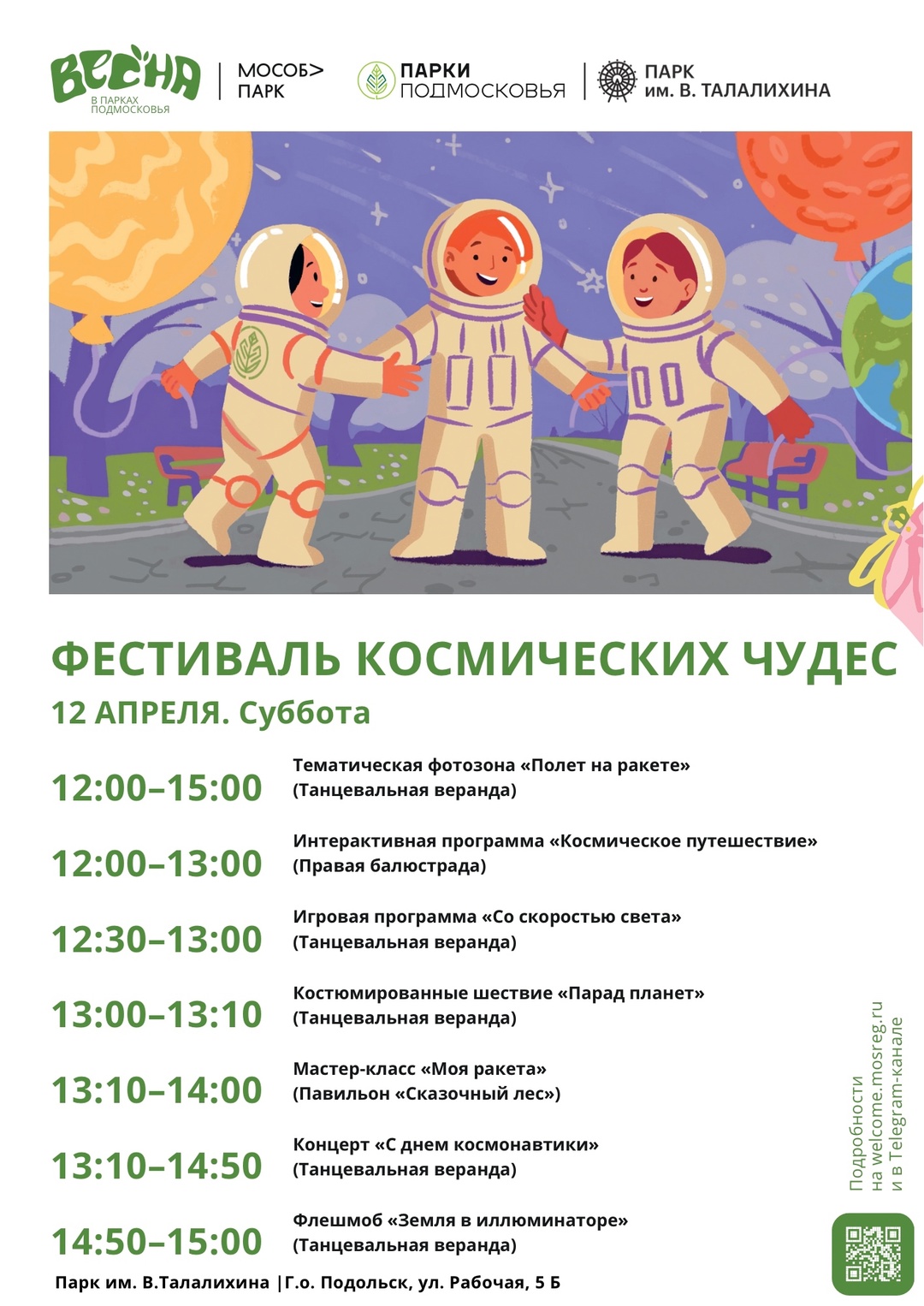 🚀Праздничное мероприятие «Фестиваль космических чудес» пройдёт 12 апреля в Парке культуры и отдыха имени Виктора Талалихина.