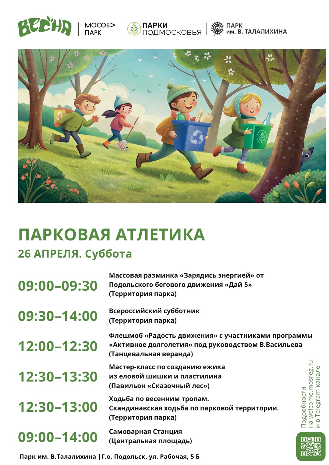 🏃🏼Праздничное мероприятие «Парковая атлетика» пройдёт 26 апреля в Парке культуры и отдыха имени Виктора Талалихина.