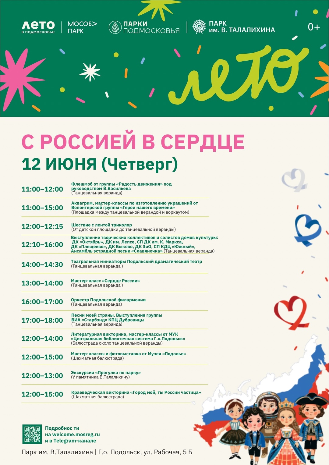 🇷🇺Праздничное мероприятие «С Россией в сердце» пройдёт 12 июня в Парке культуры и отдыха имени Виктора Талалихина.