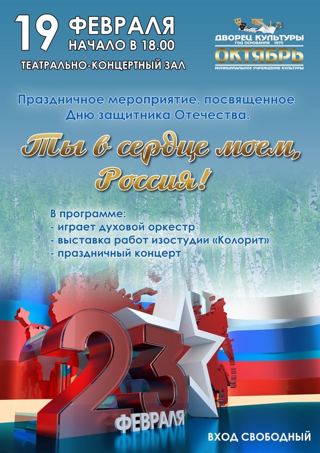 🎶В театрально-концертном зале пройдет праздничный концерт «Ты в сердце моем, Россия!», в котором примут участие ведущие творческие коллективы города.