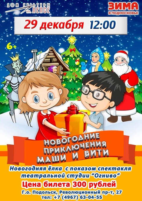 29 декабря в 12:00 приглашаем на увлекательное новогоднее представление театральной труппы СП “Плещеево” “Приключения Вити и Маши!” Захватывающий сюжет и яркие декорации подарят детям море позитивных эмоций!