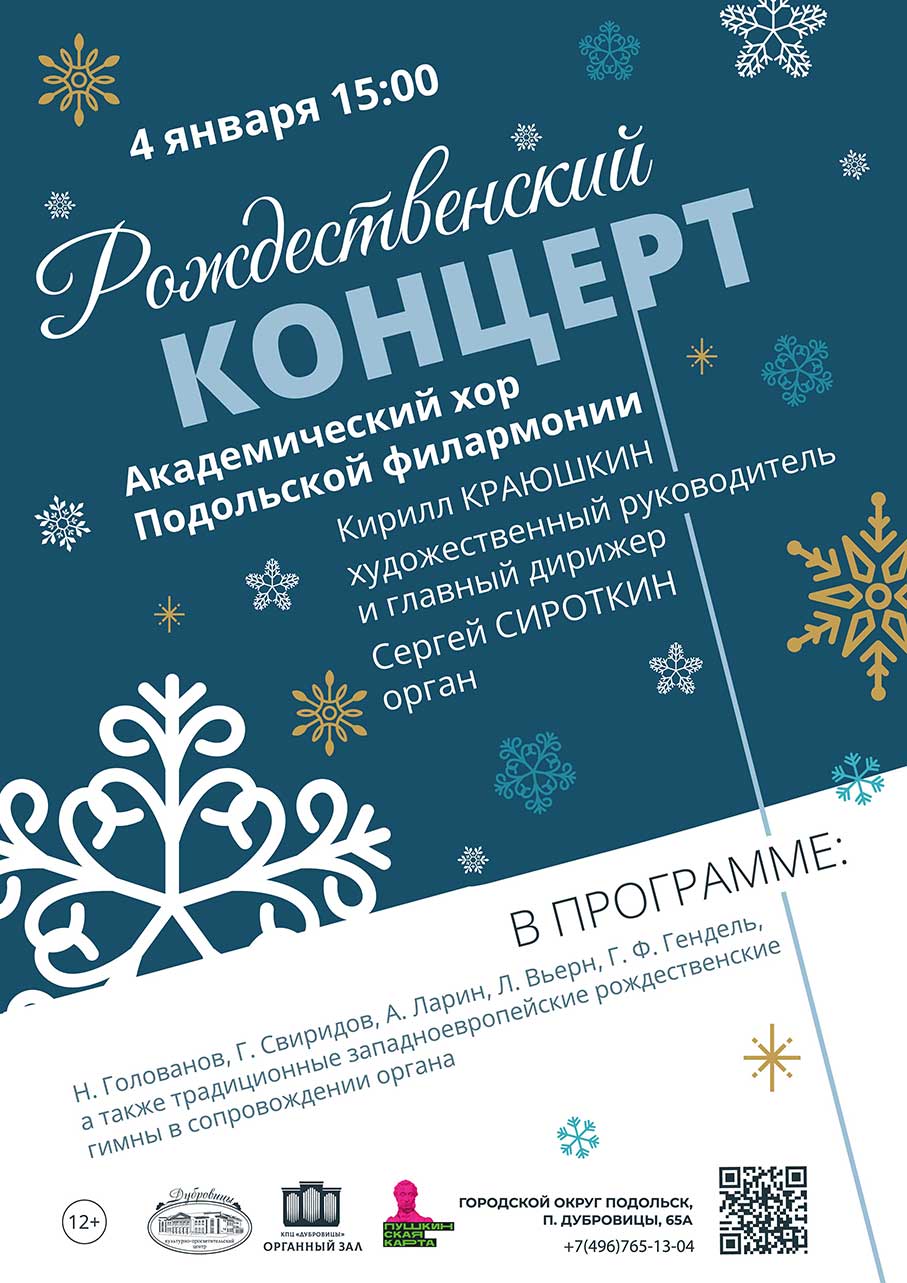 Исполнители — Академический хор Подольской филармонии, художественный руководитель и главный дирижёр Кирилл Краюшкин, Сергей Сироткин (орган). В программе: Н. Голованов, Г. Свиридов, А. Ларин, Л. Вьерн, Г. Ф. Гендель, а также традиционные западноевропейские рождественские гимны в сопровождении органа