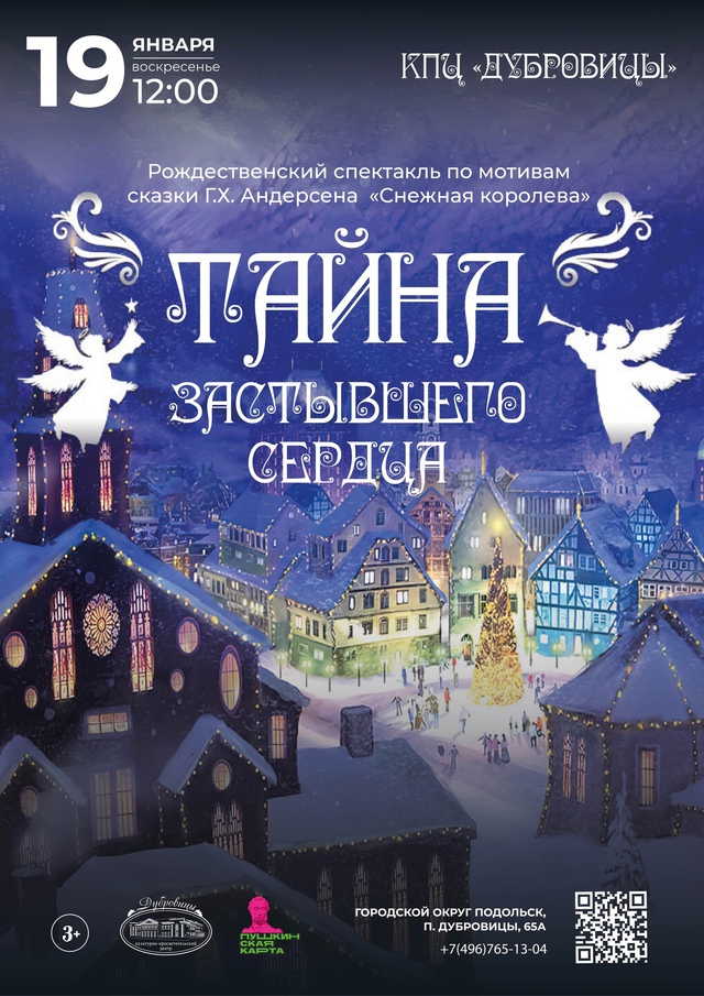 🌬 19 января в 12:00 Культурно-просветительский центр «Дубровицы» приглашает вас на рождественский спектакль 🤍«Тайна застывшего сердца»🤍 по мотивам сказки Г. Х. Андерсена «Снежная Королева», который представят творческие коллективы нашего Центра.