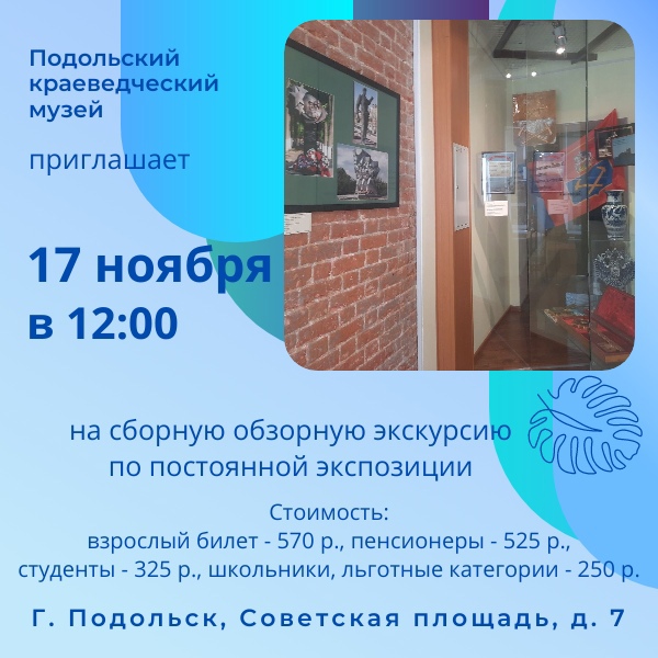 17 ноября Подольский краеведческий музей приглашает всех на сборную обзорную экскурсию по постоянной экспозиции!
