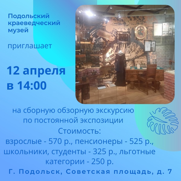 12 апреля Подольский краеведческий музей приглашает всех на сборную обзорную экскурсию по постоянной экспозиции!