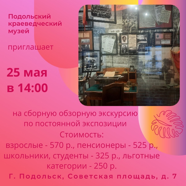25 мая Подольский краеведческий музей приглашает всех на сборную обзорную экскурсию по постоянной экспозиции!