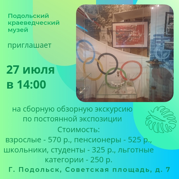 27 июля Подольский краеведческий музей приглашает всех на сборную обзорную экскурсию по постоянной экспозиции!