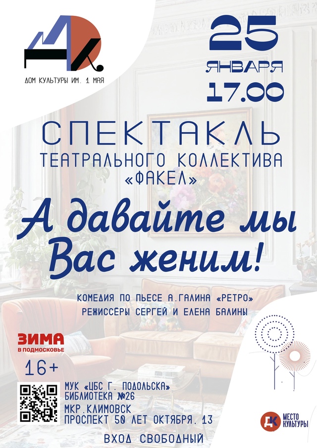 Приглашаем жителей и гостей нашего города на спектакль театра «Факел» «А давайте мы Вас женим!»