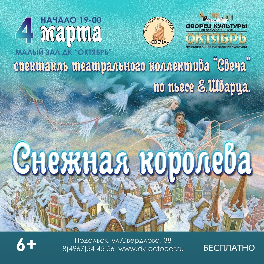 Ждем Вас 4 марта в 19.00 на спектакле «Снежная королева».