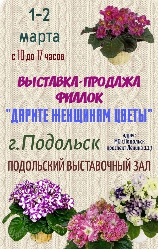 Выставка будет проходить в Подольском выставочном зале 1 и 2 марта 2025 года с 10 до 17