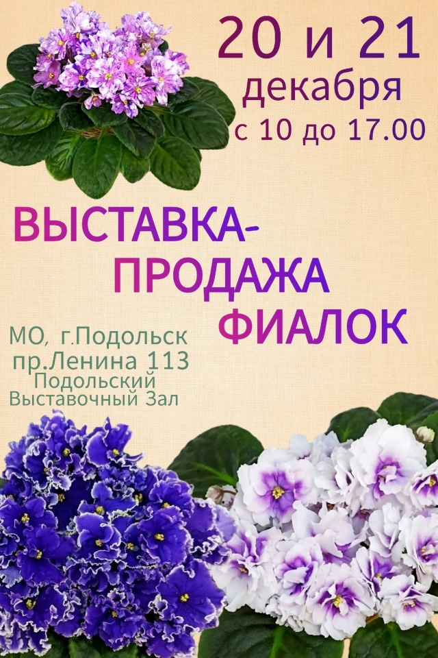 В Подольском выставочном зале 20 и 21 декабря с 10:00 до 17:00 будет проходить выставка-продажа фиалок.
