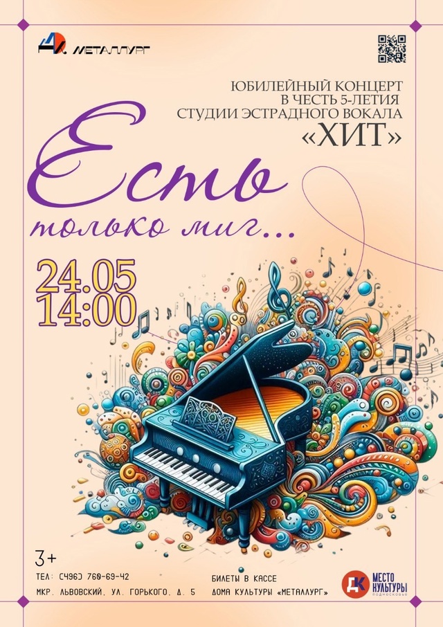 Юбилейный концерт The event is finished. Дата 24 Май 2025 Expired! Время 14:00 Места Дом культуры «Металлург» мкр. Львовский, ул. Горького, д. 5, Подольск Поделиться событием