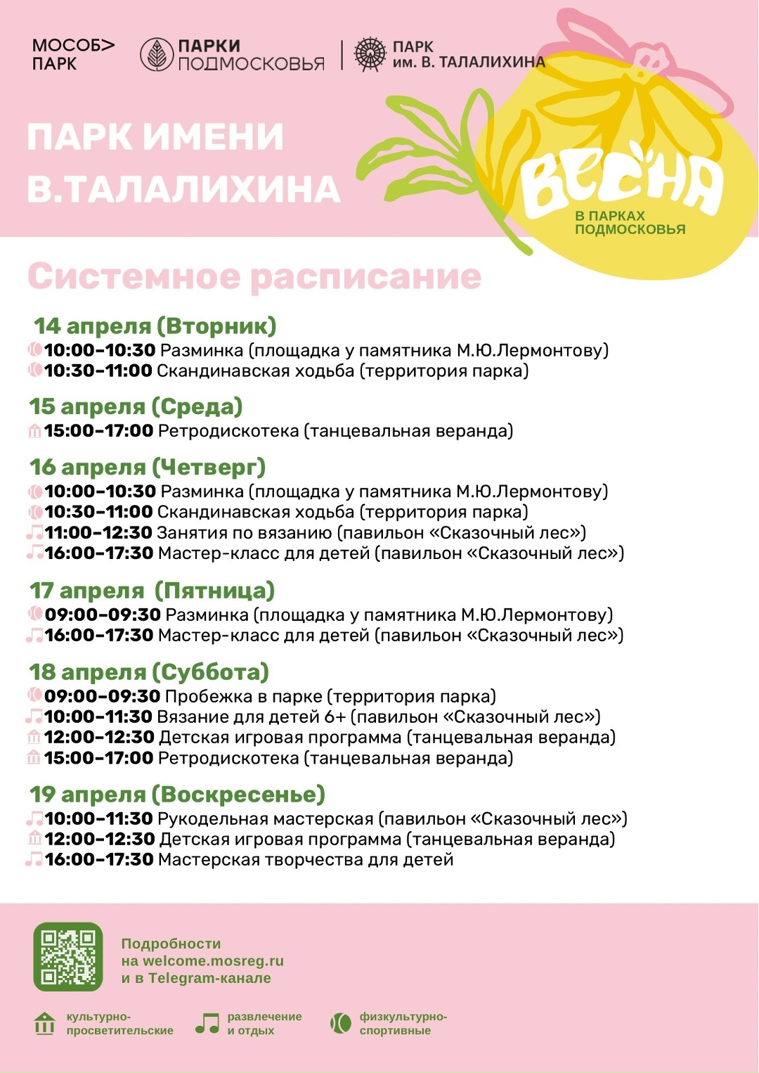 • Мероприятия в парках Г.о. Подольск с 13 по 19 апреля