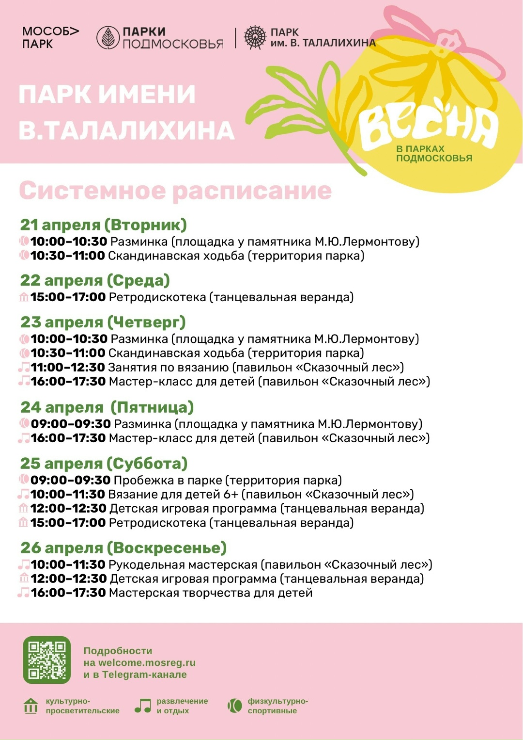 Мероприятия в парках Г .о. Подольск с 20 по 26 апреля Системное расписание на неделю с 20 по 26 апреля.