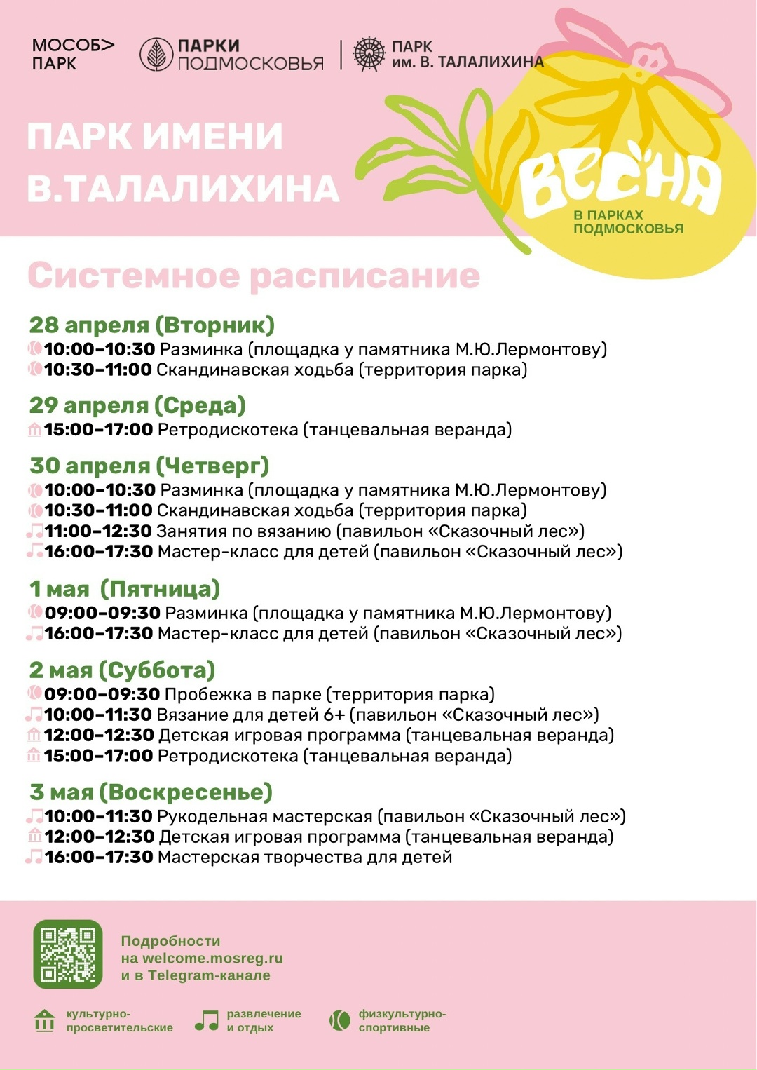 Мероприятия в парках Г.о. Подольск с 27 апреля по 3 мая Системное расписание на неделю с 27 апреля по 3 мая.